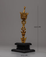 Discover the rich meaning and creativity of our Copper Phurba, a painstakingly created ritual tool that represents divine protection and might. This 19.5 cm tall, exquisitely gold-plated phurba has a wonderfully constructed hardwood base that adds to its exhibition and significance. It is made of copper.