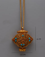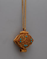 The Copper Ritual Ghau Box can be worn as a necklace or carefully placed in your house. It invites you to appreciate its beauty and commune with its spiritual essence. This Ghau Box is a tribute to custom, artistry, and the enduring force of spiritual ornamentation. It is ideal for individuals who value Tibetan culture or are looking for significant spiritual objects.