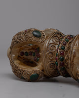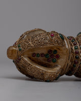 The exquisite Crystal Stone Vajra is a captivating fusion of artistry and spirituality. Meticulously handcrafted from precious crystal stone, this Vajra embodies a harmonious blend of form and energy. Its intricate details and smooth contours reflect the skilled craftsmanship that went into its creation. With a width of 18cm and a height of 7cm, the Vajra commands attention and reverence. Its translucent surface catches and refracts light, creating a play of iridescent colors that seem to dance within the crystal. As both a symbol of strength and a representation of divine power, the Crystal Stone Vajra serves as a potent reminder of the profound spiritual teachings it represents, making it a meaningful addition to any sacred space or personal collection.