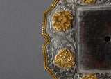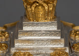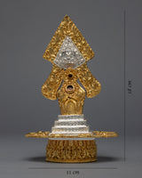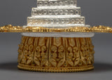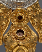 The Handcrafted Deities Torma stands as a masterful creation, meticulously crafted from copper and adorned with the exquisite touch of 24k gold and silver plating. This unique and sacred offering takes the form of intricately designed tormas, symbolizing devotion and offering in Tibetan Buddhist practice. Each detail of the tormas is a testament to the skill and dedication of the artisan, reflecting a harmonious blend of artistic expression and spiritual reverence. The shimmering gold and silver plating further elevate the beauty of these tormas, creating a visual representation of the divine realms they represent. As a powerful tool for practitioners, these handcrafted Deities Torma serve as a conduit for channeling devotion, blessings, and aspirations, making them an essential addition to rituals and ceremonies that seek to honor and connect with the spiritual realms.