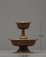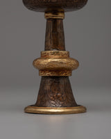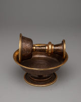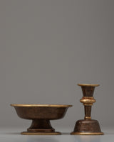 The exquisitely created Dharmapala Offering Serkyem Set, with its oxidized copper body, perfectly captures the rich spiritual legacy of Tibetan Buddhism. This set is an expression of respect and devotion; it is a holy container for gifts made to the guardian gods, known as Dharmapalas. With great care and attention to detail, every piece of the set reflects the rich symbolism and spiritual value found in Tibetan Buddhist rites.