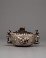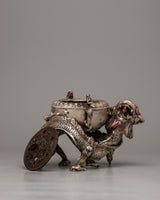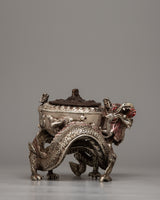 Introducing the Dragon Incense Burner, a stunning blend of creativity and utility carefully crafted to enhance your sensory experience. Its design is elegant and alluring, handcrafted on aluminum and adorned with copper and silver plating. The complex intricacies of the dragon design add a sense of mystery and grandeur to your room, beckoning you to go on a journey of tranquillity and calm.