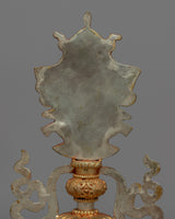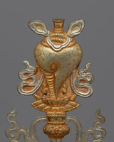 This piece's use of copper, gold, and silver not only gives it a touch of opulence but also imparts significant spiritual meaning. Gold and silver represent purity and mental clarity, while copper represents conductivity and the capacity to channel energy. As you pursue your own path to enlightenment, this magnificent work of art can be placed in your sacred space or meditation area to serve as a constant source of motivation and spiritual development.