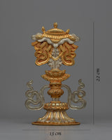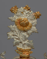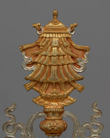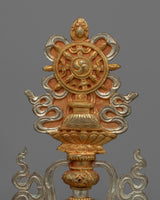 Our intricately crafted Eight Auspicious Symbols of Buddhism will enhance your spiritual environment. This exquisite piece has a 22-cm-tall copper body that has been painstakingly plated with 24k gold and silver.