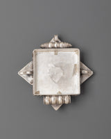 This Ghau Locket with Semi-Precious Stones is a beautifully handcrafted silver locket, embellished with vibrant coral and turquoise stones. Measuring 11cm in height and 11cm in width, it serves as a sacred container for spiritual items, prayers, or small relics, making it ideal for use on altars or during rituals.