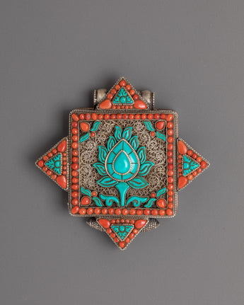Ghau Locket with Semi Precious Stones | Tibetan Altar Accessory