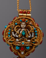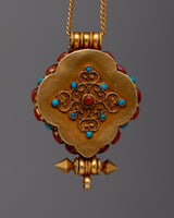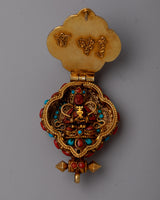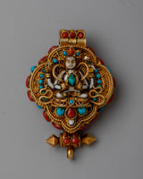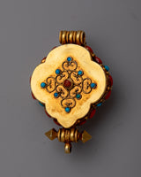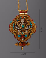 An elegant fusion of luxury and spiritual devotion is symbolized by the Gold and Silver Locket Ghau. With its elegant design and 24k gold plating embellishment, this sterling silver piece is expertly crafted and exudes everlasting beauty. The Ghau, adorned with stones of turquoise and coral that are well-known for their healing and protective qualities, has a great deal of symbolic meaning in Tibetan culture.