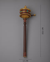 Standing at an impressive height of 55.5cm, this prayer wheel is a remarkable addition to your sacred space. The prayer wheel's cylindrical design allows you to spin it with your hand, invoking blessings and sending prayers into the world.
