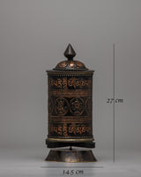 This prayer wheel, which was meticulously created by hand with great attention to detail, is not only aesthetically pleasing but also deeply spiritual. It is said that every turn of the wheel will call forth blessings, wash away bad luck, and promote harmony and inner serenity. The Hand Spinning Prayer Wheel is a powerful reminder of the universal wisdom of Buddhist teachings and the interconnection of all beings, whether it is employed in one's own meditation practice or shown in hallowed places.