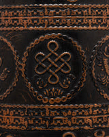 Crafted with meticulous attention to detail and care upon a foundation of copper and brass, the Hand Spinning Prayer Wheel is a representation of the essence of Tibetan spirituality. At 27cm in height, it is a physical manifestation of devotion, with mantras and auspicious symbols deftly engraved on its wheel. Practitioners perform a sacred rite in which they spin a wheel to represent the constant flow of blessings and positive energy into the globe.