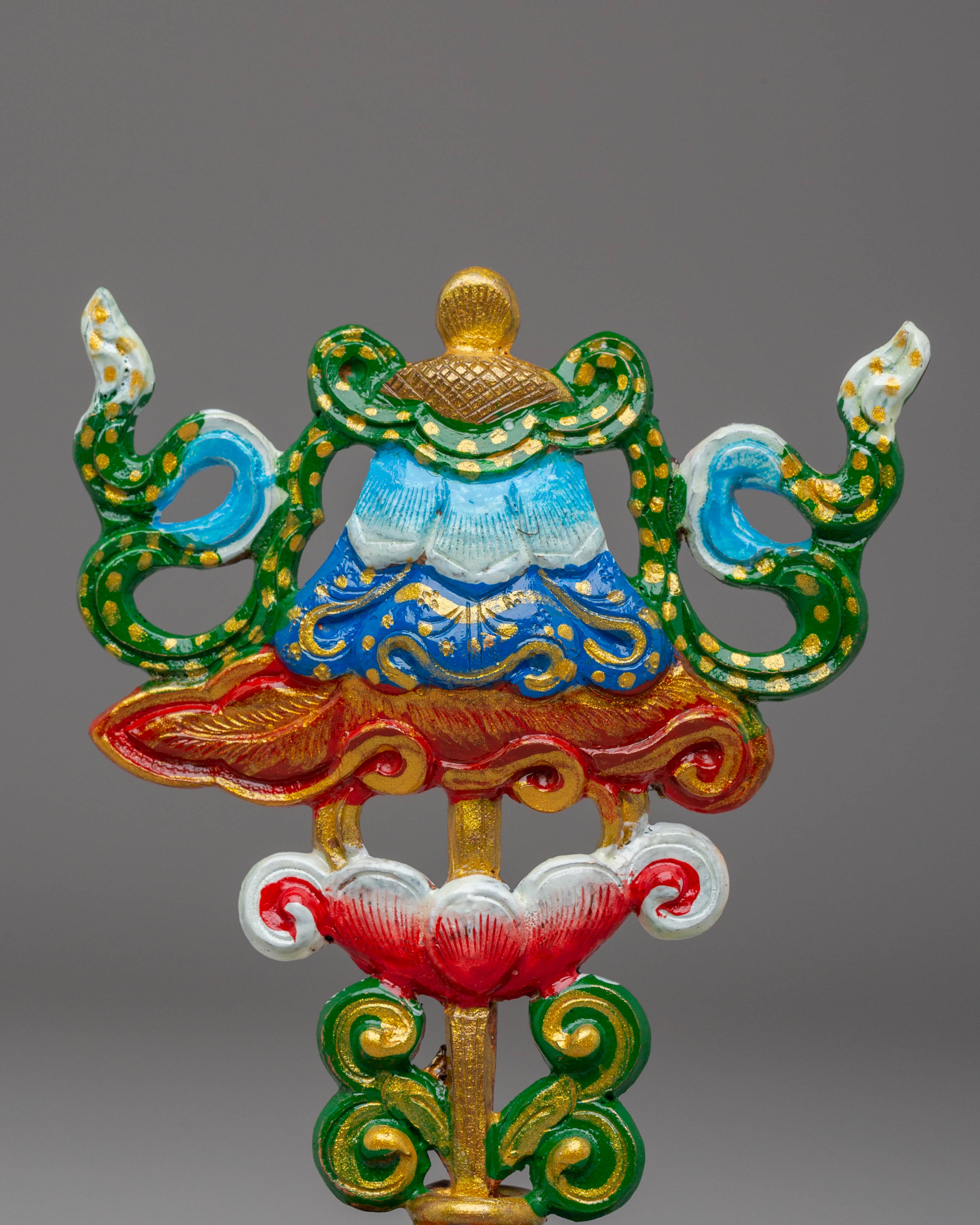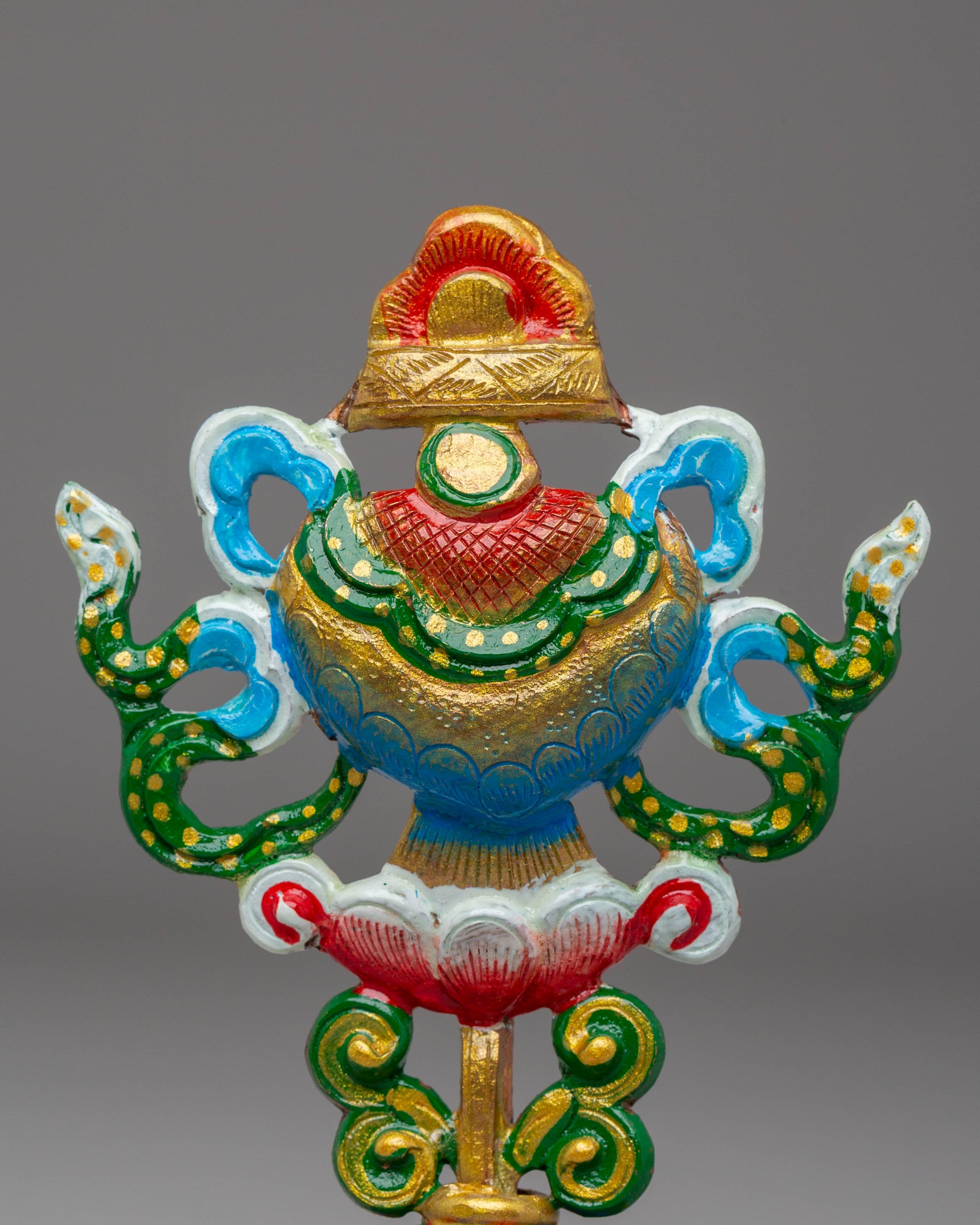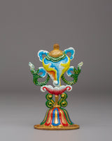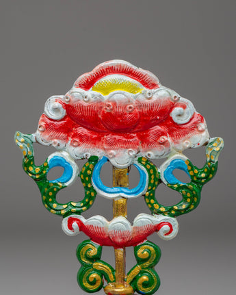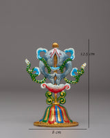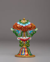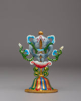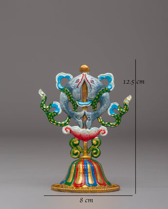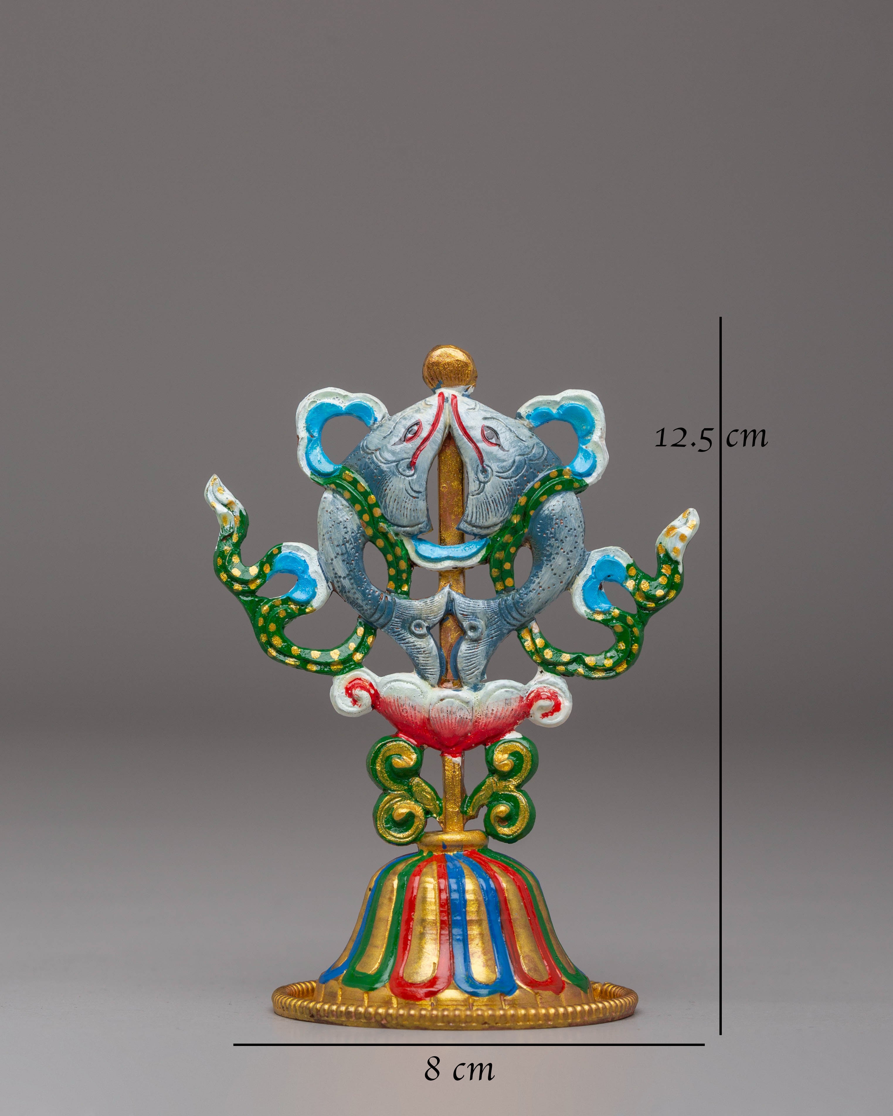 The Handcrafted 8 Auspicious Symbols set is a stunning collection of sacred Tibetan Buddhist symbols, each meticulously crafted from copper and hand-painted with vibrant acrylic colors. These symbols, which stand 12.5 cm tall and 8 cm wide, represent blessings, protection, and spiritual growth. The set includes eight unique symbols, each carrying profound significance in Tibetan Buddhism.