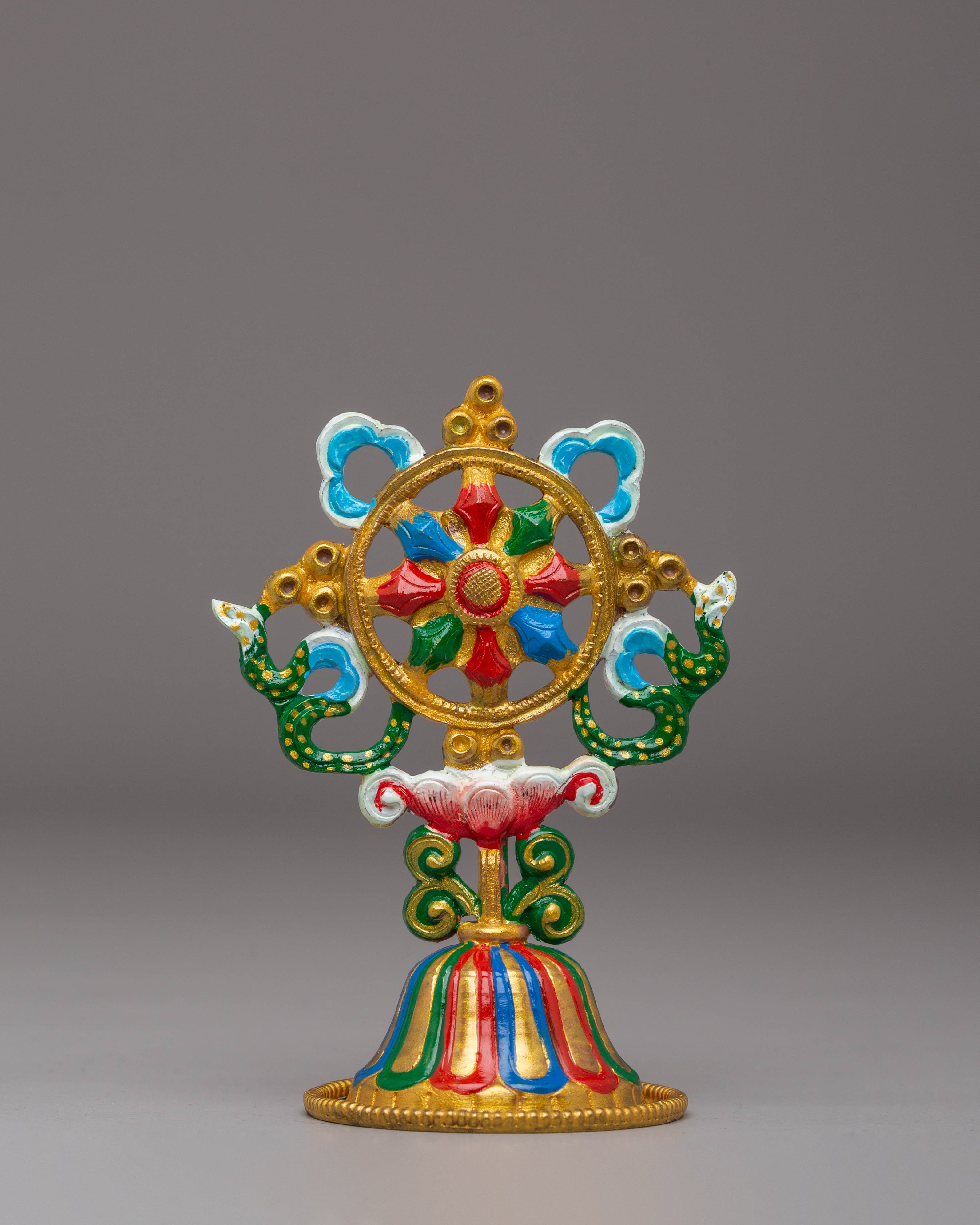 Each symbol is carefully hand-painted to capture the intricate details of Tibetan artistry. The copper body adds strength and durability, making this set both beautiful and long-lasting. The vibrant acrylic colors bring the symbols to life, making them a captivating addition to any altar, meditation space, or spiritual decor.