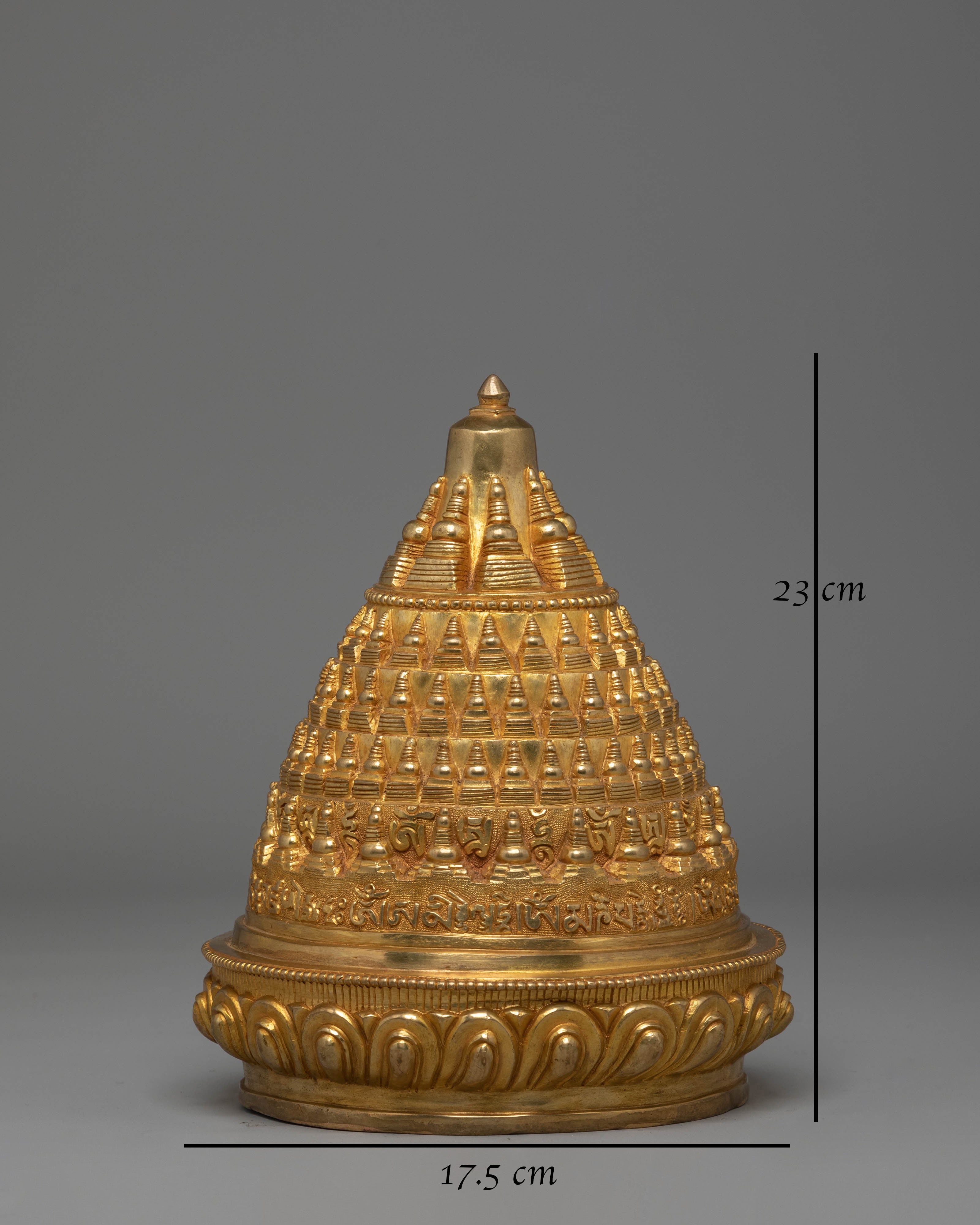 Gold Plated Buddhist Copper Stupa Art for Rituals, and Meditation