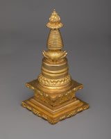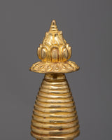 Enjoy our Handcrafted Golden Stupa's exquisite craftsmanship. This amazing work of art, which has a Copper body that has been 25k gold-plated, is the peak of spiritual artistry and devotion.
