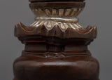 The Handcrafted Silver plated Stupa is a remarkable creation that showcases the skillful craftsmanship on a Copper base, elegantly finished with silver plating. Standing at a height of 18cm, this stupa exudes a sense of sacredness and reverence. It's intricate design and meticulous detailing make it a symbol of spiritual devotion and artistic mastery. The silver plating adds a touch of luster and brilliance, further enhancing its visual allure. Whether displayed as an object of veneration or appreciated for its aesthetic beauty, the Stupa captures the essence of tradition and artistry, making it a meaningful addition to any space.