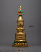Presenting the beautiful Handcrafted Spiritual Stupa, a masterfully constructed representation of spiritual grandeur and legacy. This stupa, which stands 48 cm tall, is made of strong Copper and is crafted with skill, so it is both long-lasting and noticeable. Finished with an opulent 24k Gold Plating , it reflects both the natural light and the spiritual light that it is intended to bring into any area that it is placed in.
