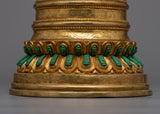 The 24k Gold Copper Stupa is perfect for both private and public settings, adding a sense of peace and deep spiritual meaning to the area around it. It serves as a witness to the path towards enlightenment and a continual reminder of the virtues of mindfulness, compassion, and the quest of spiritual development whether it is positioned in a house, temple, or meditation center.
