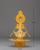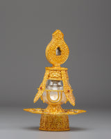 The Buddhist Ritual Long Life Vase, also known as the Tibetan Ayur Kalasha, is a sacred vessel symbolizing longevity, health, and prosperity. Used in Tibetan Buddhist rituals, it is believed to invoke the blessings of longevity deities like Amitayus and White Tara, who are revered for their power to protect and extend life. The vase is traditionally filled with sacred substances, such as herbs, grains, and mantras, to channel divine energy and promote well-being and vitality. It is a powerful tool in ceremonies for overcoming obstacles and inviting auspicious blessings. Whether placed on an altar or in meditation, the Long Life Vase represents a connection to spiritual vitality, offering protection and guiding one toward a balanced and harmonious life.