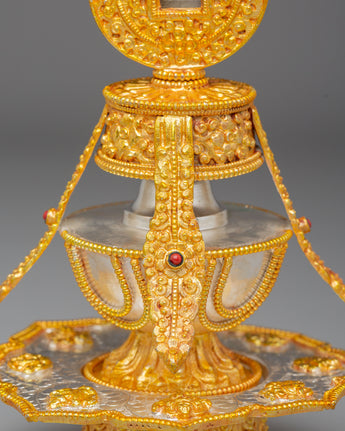 Sacred Long Life Vase | Gold & Silver Plated Tibetan Decor