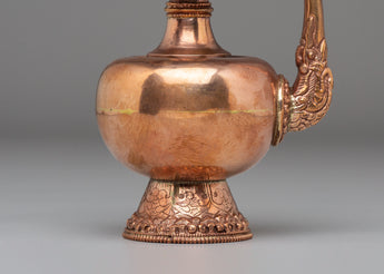 The Handmade Traditional Bhumba is not only a functional ritual tool but also a piece of art that embodies the Tibetan reverence for offerings and purification. The copper body serves as a symbol of strength and spiritual foundation, while the gemstone embedded in the piece signifies the connection between the physical and spiritual realms. This sacred vessel is ideal for altars, meditation spaces, or as a symbol of devotion, bringing peace, purity, and spiritual clarity to those who embrace it.
