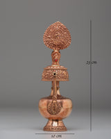 The Handmade Traditional Bhumba is a beautiful and meaningful representation of Tibetan ritual art, designed to hold spiritual significance in any sacred space. Standing at 23cm tall and weighing just 0.32kg, this copper vessel is carefully handcrafted and adorned with a gemstone. The Bhumba, traditionally used in Tibetan rituals, symbolizes a vessel of offering, transformation, and spiritual purity. The intricate copper design enhances the piece’s sacred energy, while the gemstone adds a touch of divine beauty and vitality. Whether used for meditation, prayer ceremonies, or as a decorative piece, this vessel holds a deep spiritual connection to Tibetan Buddhist traditions.