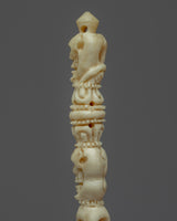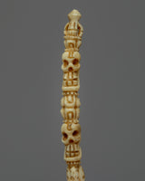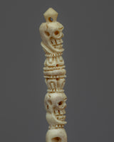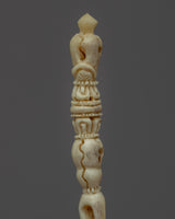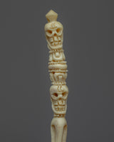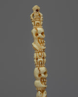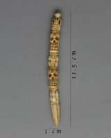 Phurbas are Tibetan ritual objects that are used in Buddhist practices. This set of three phurbas is hand-carved from ethically sourced buffalo bone. Each phurba is adorned with two heads, representing the duality of existence and the need to transcend it. The intricate designs on the phurbas are a testament to the craftsman's skill and artistry. These phurbas can be used for a variety of spiritual purposes or displayed as a work of art. The use of ethically sourced materials ensures that these phurbas have a low environmental impact and adhere to Buddhist principles of nonviolence.