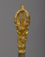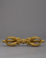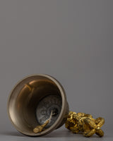 This exquisite Vajra and Bell set is a true masterpiece of craftsmanship. Both the Vajra and Bell are meticulously handcrafted with great attention to detail. The top of the Bell and Vajra is made from brass, which gives them a stunning golden hue and adds a touch of elegance to the set. The Bell itself is crafted from bronze, a durable and resonant metal that ensures a beautiful sound when played. Together, this high-quality Vajra and Bell set is not only a functional musical instrument for rituals and ceremonies but also a symbol of spiritual significance and reverence.