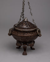 Incense burners are sometimes known as thuribles and can be swung by hand or suspended from the ceiling. The swinging action creates a draught through the censer, which allows the charcoal to glow and the incense to burn more strongly.