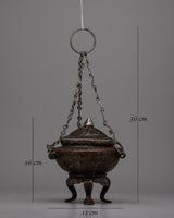 With our handcrafted, durable iron incense burner, you could find yourself in peace and quiet. This useful item is both elegant and functional, measuring 41 cm in height by 19.5 cm in width and weighing 3.01 kg.