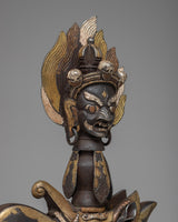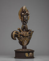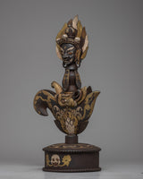 The Iron Kartika Knife with Stand is perfect for displaying in a meditation space, as part of a personal collection of spiritual artifacts, or as a standout piece in a home or office. It not only serves as a decorative item but also as a reminder of the path to enlightenment and liberation. Its presence in any setting is certain to elicit admiration and contemplation, making it an important addition for those who value the intersection of artistry, spirituality, and traditional craftsmanship.