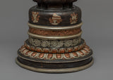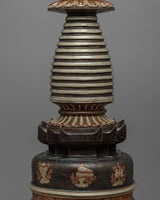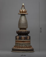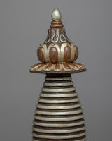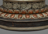 The Kadampa Buddhism Stupa is a stunning work of art that has been carefully constructed on a Copper body with excellent silver plating. Standing at an impressive height of 60 cm, this stupa commands attention and reverence. Every component of its design and construction has been meticulously considered in order to capture the essence of Kadampa Buddhism. The silver plating lends a shine to the stupa, representing purity and spiritual illumination. This handcrafted Kadampa Buddhism Stupa serves as a precious and inspiring focal point for practitioners and admirers alike as a reflection of enlightenment and deep spiritual practice.