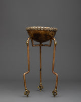 This set, which comes with a copper stand, turns the kapala into a sacred altar piece and provides a concrete focus point for reflection and meditation. The stand offers steadiness and support, enabling the kapala to be presented with elegance and dignity. They come together to create a harmonious whole that invites practitioners to become more deeply involved in spiritual practices and strengthen their relationship with the divine.