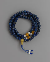 Originating in India, the 3A Quality Lapis Mala is a testament to both spiritual significance and expert craftsmanship. The 6mm lapis lazuli beads used in each carefully made mala are prized for their deep blue hue and special qualities. Enhanced with conch and yellow jade dividers, the mala is a symbol of spiritual awakening and prosperity in addition to elegance.