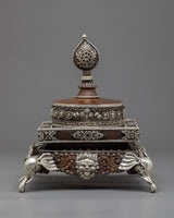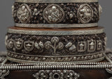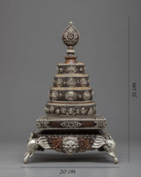 Experience the divine symbolism of Buddhism with this captivating Mandala Buddhist Symbol. Meticulously handcrafted on an oxidized copper body and adorned with exquisite silver plating, this sacred symbol embodies deep spiritual significance. Each intricate detail is a testament to the artisan's craftsmanship, inviting you to explore the depths of Buddhist philosophy and meditation. As you immerse yourself in its radiant beauty, allow the Mandala Buddhist Symbol to guide you on a transformative journey, awakening inner wisdom and transcending earthly limitations. Embrace the profound teachings of the mandala and connect with the universal energy it represents. Let its presence bring peace, clarity, and a deeper understanding of the interconnectedness of all beings.