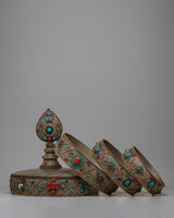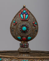 This offering plate, adorned with 24k gold and silver plating, emanates elegance and luxury, serving as a stunning centerpiece for sacred rituals and ceremonies. Its round design represents unity and peace, while the intricate patterns signify the interconnectivity of all beings. As an offering vessel, it has great spiritual significance, encouraging practitioners to cultivate generosity and compassion on their spiritual journey.