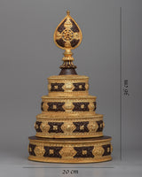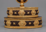Embrace the sacred with the Mandala Rice Offering Set, a stunning work of art that bridges the gap between art and spirituality. With its copper body exquisitely adorned in resplendent 24k gold plating, this set is a testament to meticulous craftsmanship. It commands attention and reverence, standing tall at 64cm and adding an air of opulence to your sacred space.