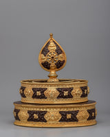 The intricate design of the Mandala serves as a focal point for rice offerings and spiritual rituals. It creates a powerful environment for connecting with the divine and channeling your inner spirituality. Each piece in this set has been carefully crafted to elevate your spiritual practices, transforming them from rituals into transformative experiences.