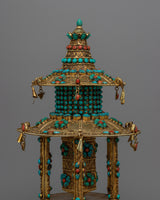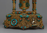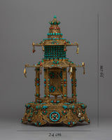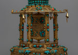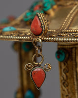 Let me introduce you to the magnificent Meditative Turquoise & Coral Prayer Wheel - a work of sheer elegance and spirituality that you will not want to miss! This exquisite creation features a copper body that is adorned with resplendent 24k gold plating and embellished with turquoise and coral stones that add not only beauty but also profound symbolism.