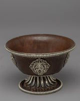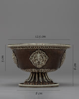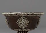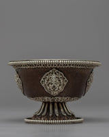This set of Seven Offering Bowls is a stunning work of art and dedication. Each bowl is carefully carved from copper and delicately silver-plated, providing a stunning contrast and giving a sense of luxury to the overall design. The bowls are decorated with artistically carved auspicious symbols that represent blessings, abundance, and spiritual prosperity. These offering bowls can be used as a sacred vessels for various ritual offerings or as a decorative element to create an environment of reverence and dedication.
