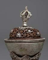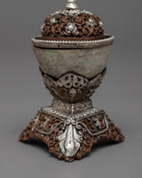 The Kapala is revered for its symbolic representation of transformation and liberation, and it is traditionally used in Tibetan rituals. This set is a work of art that connects the divine and the earthly realms, not just a piece of spiritual gift. It is an absolute must-have for collectors, practitioners, and anyone intrigued by the mystique of Tibetan culture because of its exquisite detailing and excellent craftsmanship.