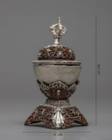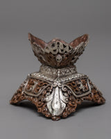 The Oxidized Copper Kapala Set is more than just a decorative piece; it can be used as a centerpiece in a collection of spiritual artifacts or as a meditation room piece.