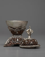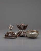Experience the exquisite workmanship and profound spiritual meaning of our Oxidized Copper Kapala Set, which is carefully handmade from a body of oxidized copper that radiates timeless beauty and ancient allure. This set's rustic charm is enhanced with a hint of sophistication and elegance thanks to its silver plating.