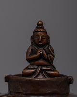 Meticulously handcrafted, the Oxidized Copper Stupa stands as a testament to both artistic ingenuity and spiritual reverence. Crafted from copper, this stupa features an intricate design that reflects the rich tapestry of Buddhist symbolism. What makes this piece unique is its upper part, which can be separated, revealing its inner sanctum. This design element allows for a deeper exploration of the stupa's symbolism, offering a tangible connection to the mysteries it holds. Whether as an object of devotion or a decorative statement, this stupa captures the essence of a spiritual journey and discovery.