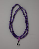 The beads' size makes them easy to use during meditation, providing tactile comfort for mantra recitation or as a physical reminder of intentions. This mala is distinguished from more traditional options by its use of purple jade, known for its calming properties, and provides practitioners with a unique energy.