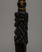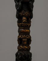 Our Resin Phurba Dagger allows you to channel the ancient energy used in Tibetan rituals. This dagger is handcrafted on a resin body and is a commanding 35.5 cm tall, exuding strength and presence. The Phurba's three-sided blade and symbolic handle are part of its sophisticated design, which is carefully made to convey the soul of this sacred weapon. This dagger provides a concrete link to spiritual worlds, whether it is employed in ceremonial ceremonies or exhibited as a focal point in your meditation room.