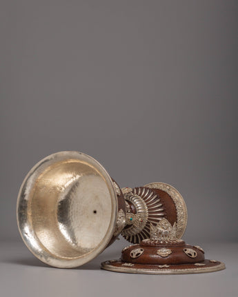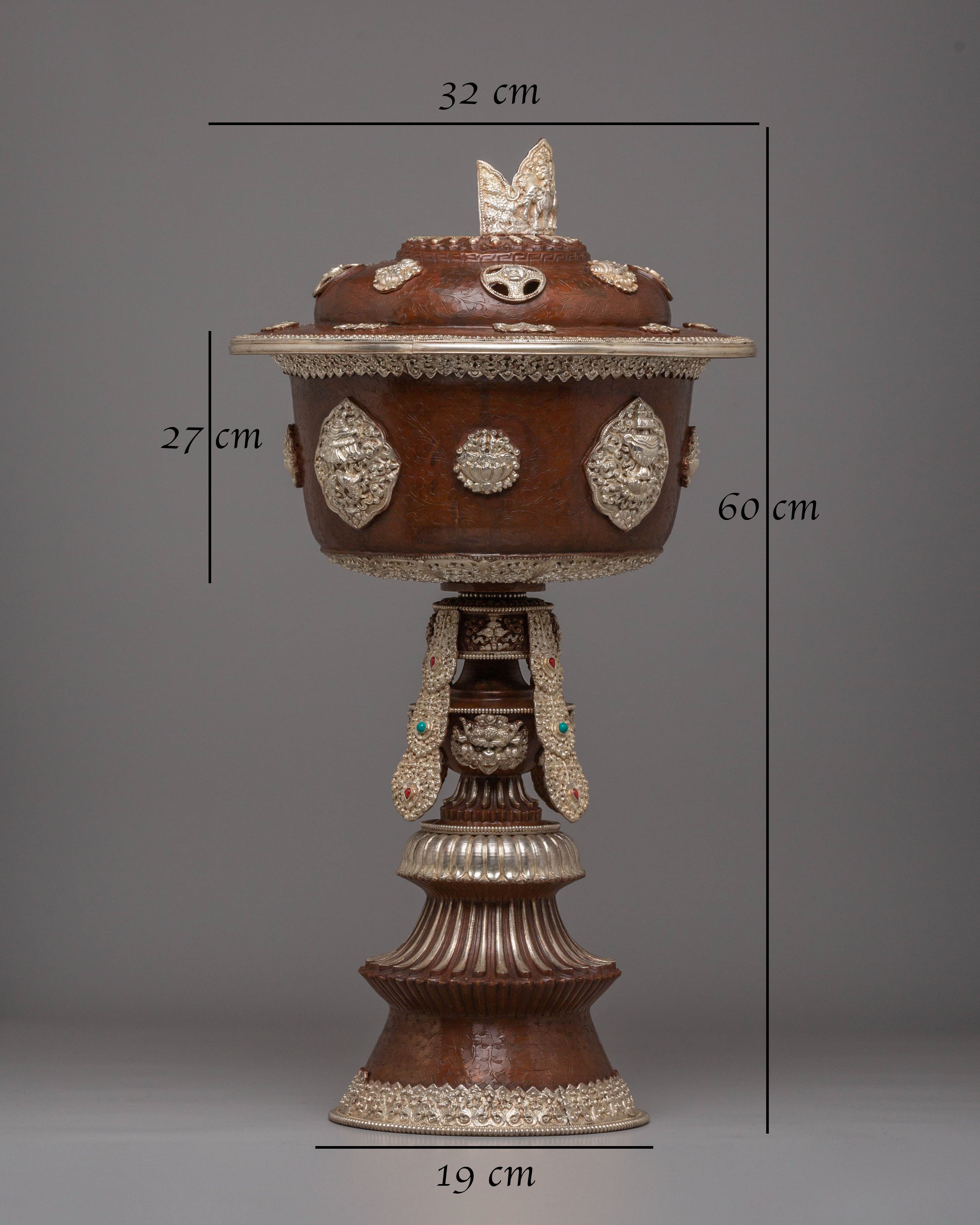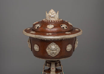 The Sacred Tibetan Light Butter Lamp makes an excellent spiritual offering or present. This lamp, whether put on an altar, meditation room, or as part of a collection of religious things, exudes serenity and tranquility. Its weight and materials give it a sense of permanence and stability, making it a lasting reminder of your spiritual path and dedication to enlightenment.