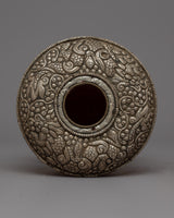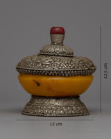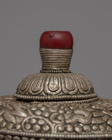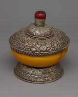 Silver Dhupur Rice Pot | Tibetan Food Offering with Plastic Amber