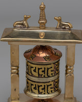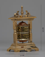 Every component of this prayer wheel, including the frame and the wheel itself, is made of brass and was carefully and precisely crafted. This guarantees both longevity and a smooth transition between spirituality and craftsmanship.