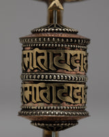 The Stupa Prayer Wheel is a spiritual object that has been painstakingly constructed by hand. It has a brass stand and a copper body with a stupa design. In Buddhist traditions, this 18-cm-tall sign represents spiritual commitment and reverence.
