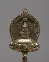 This prayer wheel becomes a center for introspective meditation, its copper body signifying authenticity and durability, and its brass stand and stupa contributing to its visual appeal. Practitioners participate in an age-old ceremony that is thought to call forth blessings and spiritual merit when they interact with it. The Stupa Prayer Wheel is a tool for connecting with the holy and embodies the spirit of Buddhist ceremonies, whether it is utilized for individual meditation or part of a group worship.